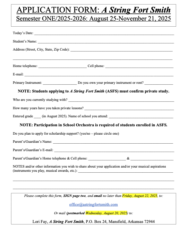 Please join our A String Fort Smith mailing list and learn about upcoming concerts, special events, artist profiles, and more!
